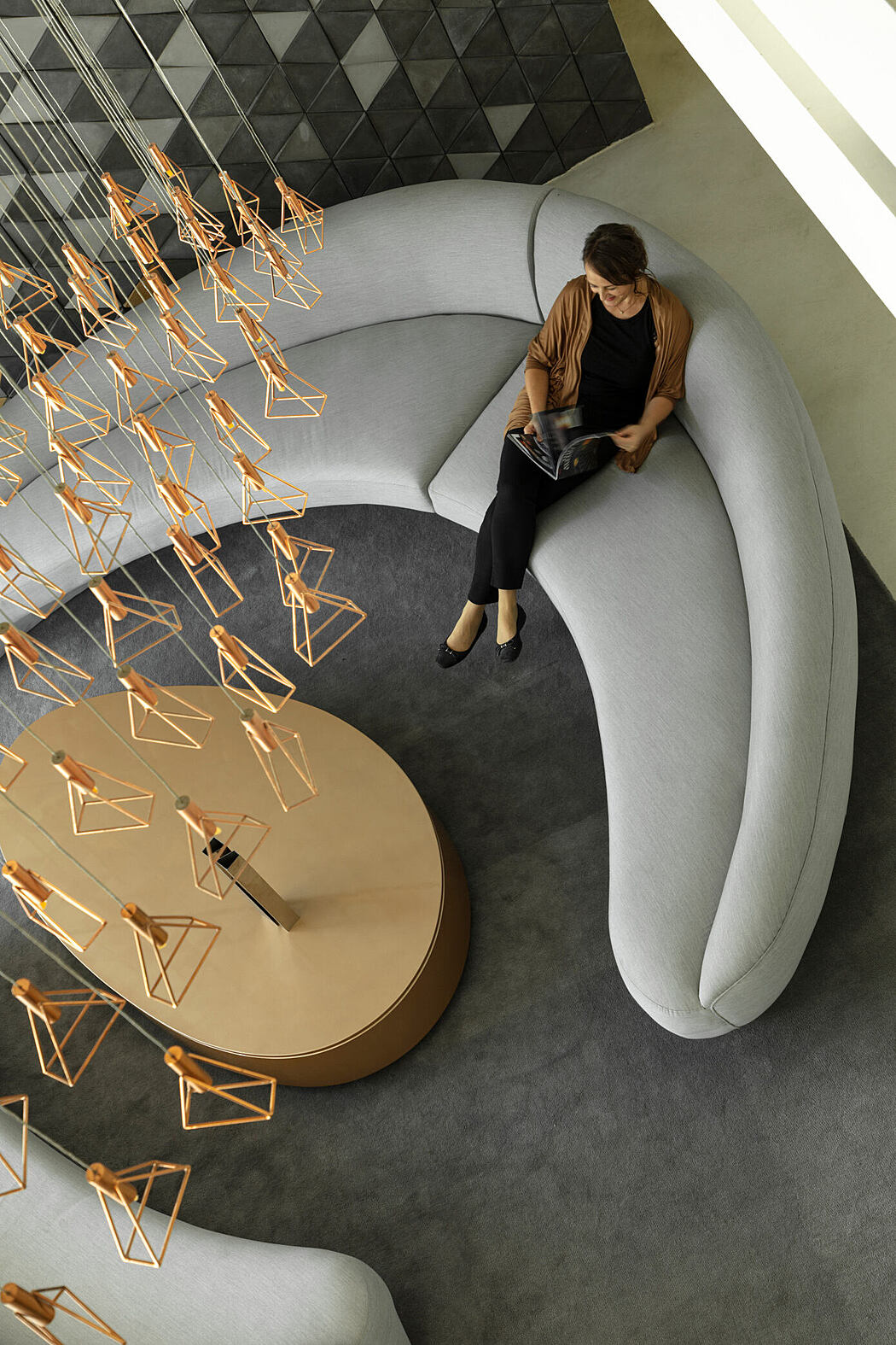 The odd shape of the plot along with the views to the neighbourhood park were used as design drivers. Thematically the design looks at flowing the green of the neighbourhood park in the site, with streamlines emerging from the park facing southern side and opening up towards the northern edge of the site. This base grid has been used to define the built-form and landscape zones such as water bodies, hard scape and soft scape.