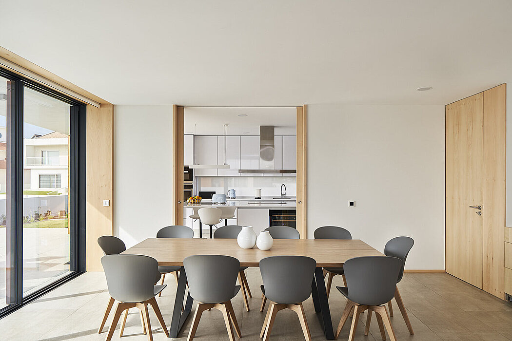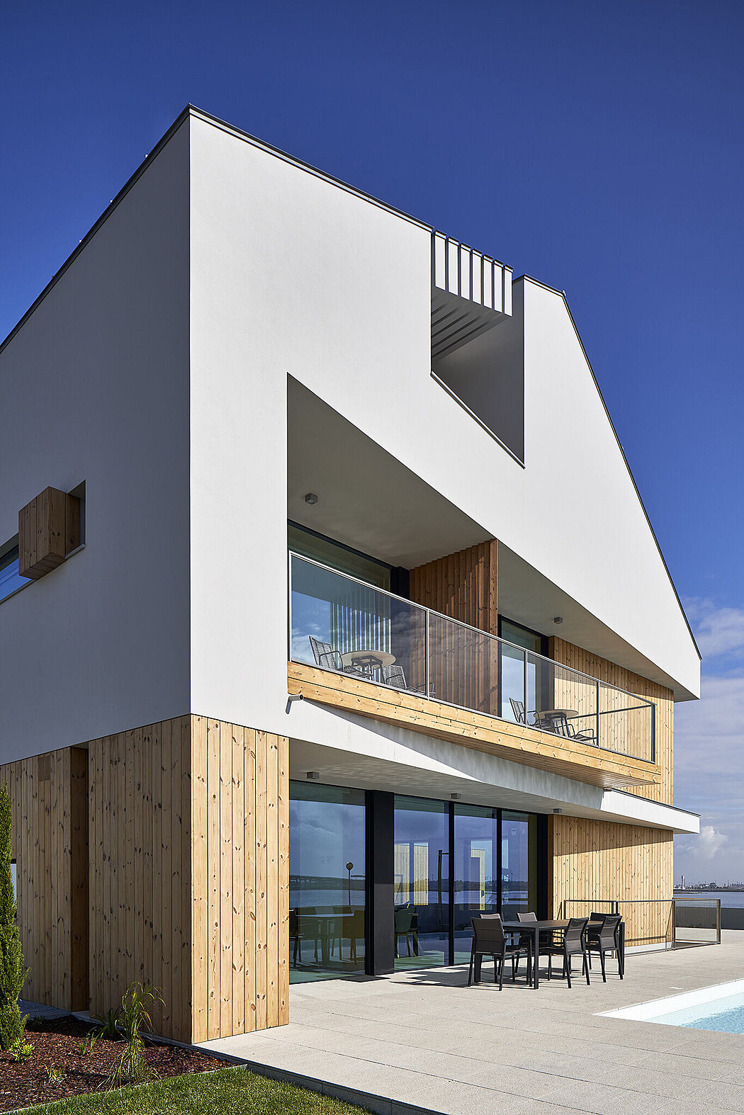 This project sought to respond to an extensive programme and comply with the rules of the allotment located at Praia da Barra, right beside Ria de Aveiro. With privileged views of the Ria, this house is designed for a large family—from grandparents to grandchildren—with the purpose of providing both communal and private living spaces.