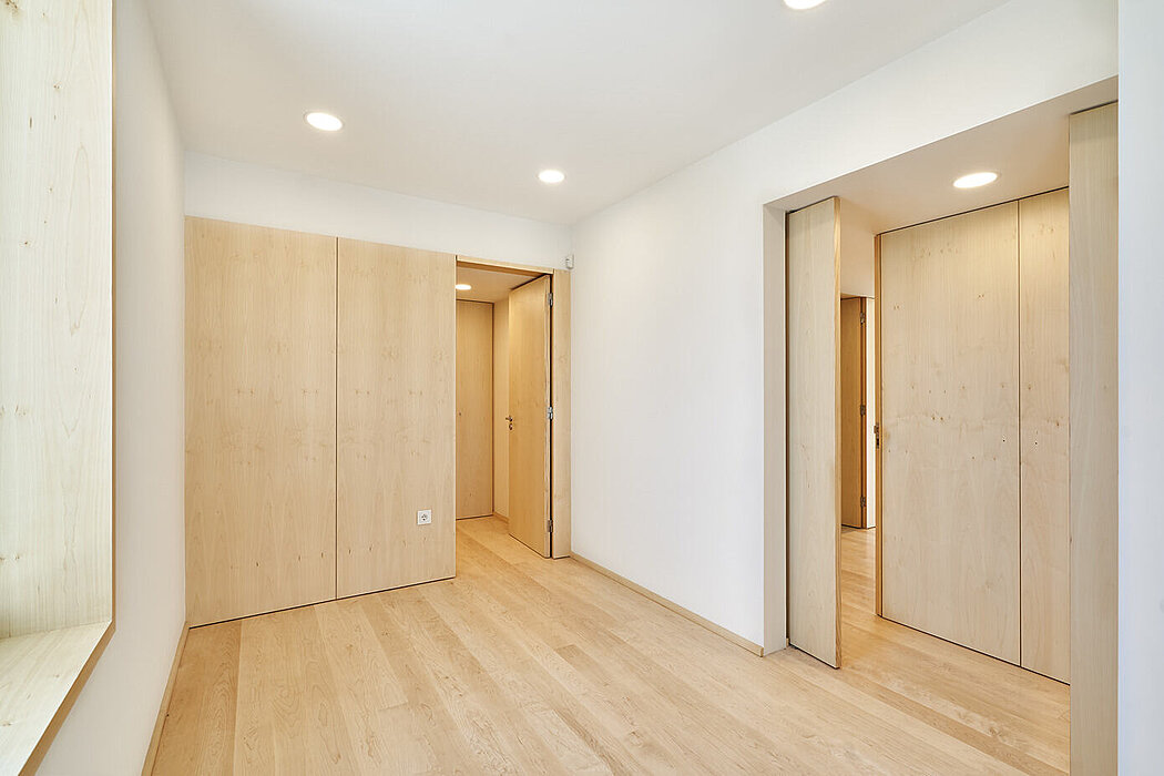 On the attic floor are two bedrooms and a bathroom for the youngest family members. The organization of this floor was determined by the views and sun exposure.