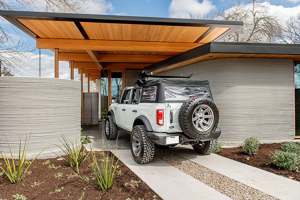 The home measures 2,000+ square feet (185.8 square meters) and features three bedrooms, two and a half bathrooms. Additionally, an accessory dwelling unit of 350 square feet (32.5 square meters) contains one bedroom and one bathroom. ICON’s resilient 3D-printed wall system replaces a building system traditionally made up of multiple steps, saving time, waste, and cost.