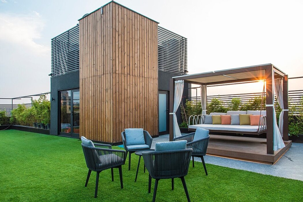Crafted to optimise natural light and use natural materials, this 2,700 sq. ft. (246.8 m²) residence was designed to nurture green urban living, providing an efficient and aesthetically pleasing home. Combining high-end products and bespoke furnishings, the residence features everything from double-glazed windows to VRV systems, making it energy-efficient and comfortable.