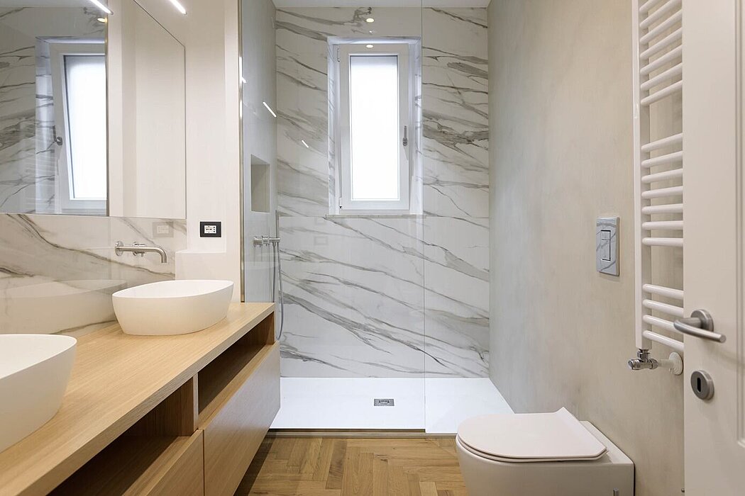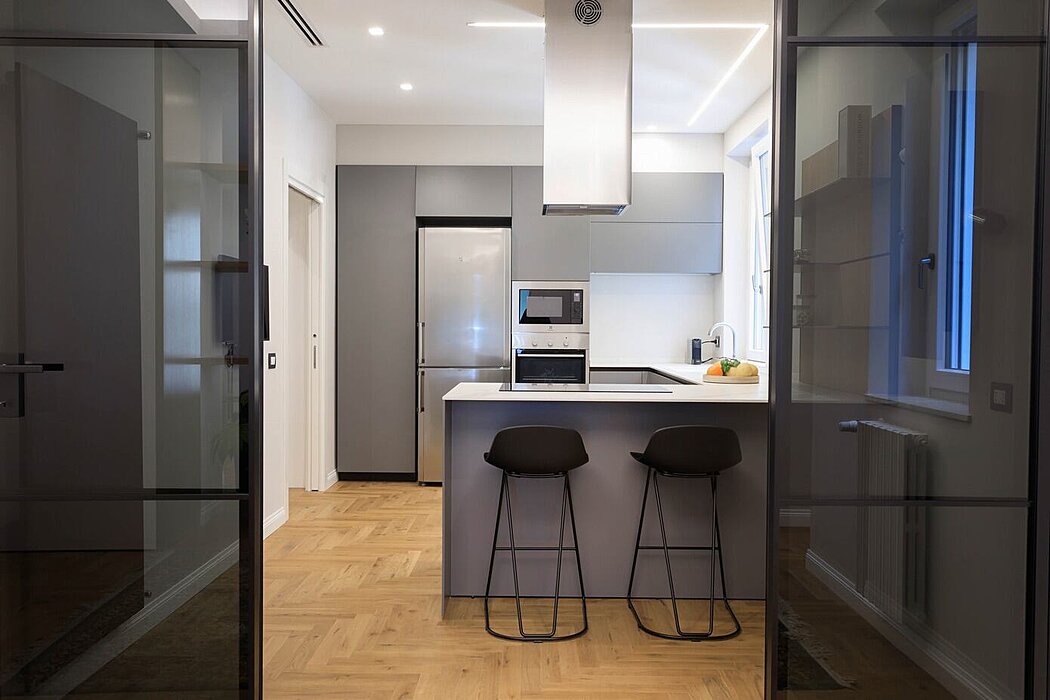 Located in an area of Palermo built around the 1950s and 1960s, the apartment was on the second floor of a residential building that had undergone a modification and expansion of its original structure. In order to achieve a complete renovation of the apartment, the project had to take into account the mixed structure in reinforced concrete and load-bearing masonry. Through the study of the interior layout, the team managed to reconcile the limitations imposed by the load-bearing masonry with a modern vision and fruition of the interior spaces.