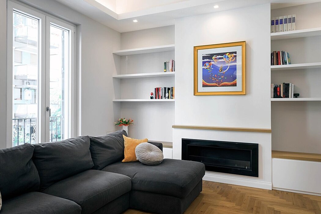 The end result was an apartment characterized by simple and modern lines, with neutral tones combined with the natural essences of wood, while still integrating a planimetric conformation from the “past”. The classic arrangement of many rooms arranged in sequence along a corridor was given a new conformation by dividing the apartment into living and sleeping areas. To make the project even more special for the clients, the team designed and custom-made a fitted wall with a fireplace, hallway and entrance hall closets, a kitchen designed to make the most of every inch (2.54 cm), a master bathroom cabinet, and a study and play room for the children.