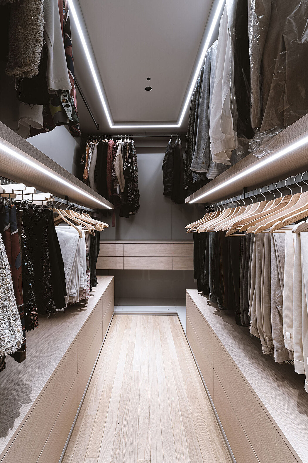 ZDA preserved the wooden ceiling and original brick column, both of which add to the space’s traditional charm. The wooden ceiling was bleached to give it a contemporary feel. The creative leap is even more evident on the first floor, where plasterboard ceilings and lowerings create a distinctive country-chic touch in an ultra-modern style.