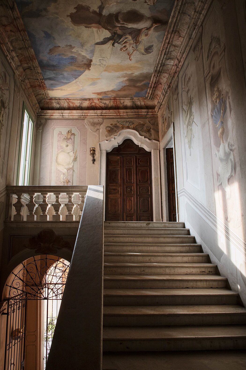 Vipp Palazzo Monti is the 7th entry in Vipp’s guesthouse portfolio – an exploration of architectural archetypes turned one-of-a kind bookable venues. Entering the opulent gates of the palazzo is like stepping into an old masters painting. A voluminous staircase framed by pastel frescoes leads to the first floor, where three consecutive rooms, including a hallway, a salon and bedroom with adjacent walk-in and bathroom, have been transformed into a contemporary suite. Here, Vipp’s minimalist furniture and lighting collection is set against a backdrop of ornamented décor and art pieces.