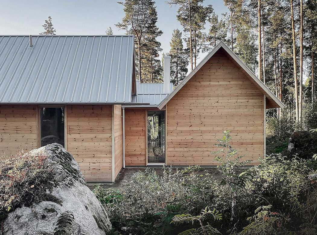 In pursuit of sustainability, the house has been customised to the families existing furniture in order to reduce the need to buy new and replace. Walls and roofs have been constructed free from plastic and insulated with flax fibers according to vernacular traditions of the area. The facade is cladded with untreated heart pine from a local sawmill and the concrete-free foamglas foundation is made from recycled glass. The rainwater from the Aluzink cladded roof is collected in an underground tank providing the green house with water.