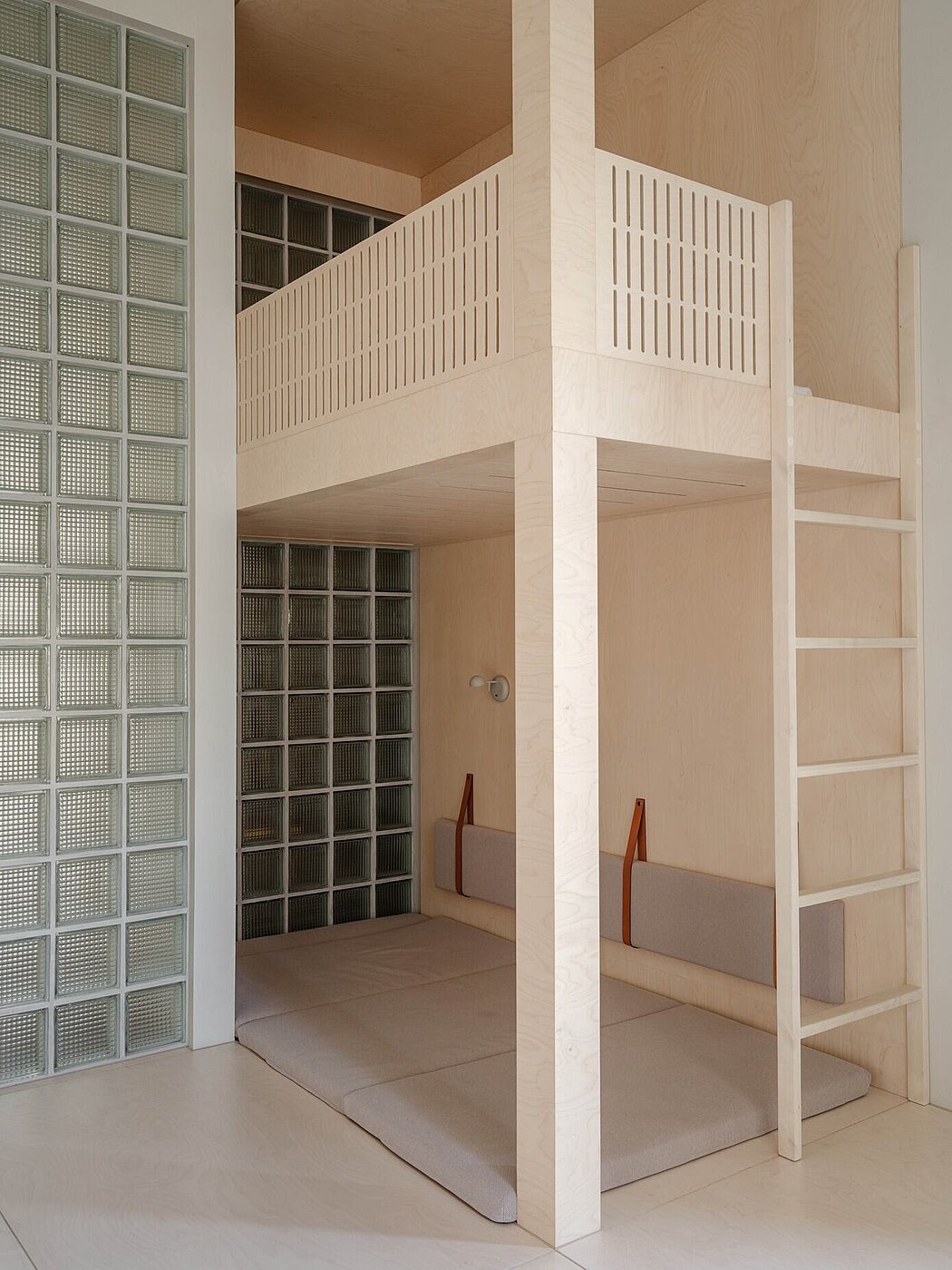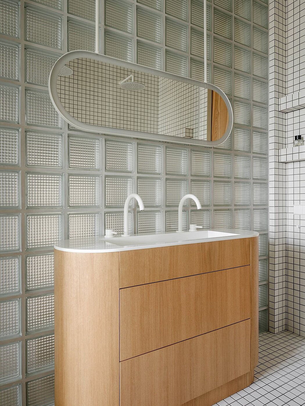 This project beautifully showcases the Japandi, or Japanordic, design style. The corridor’s monotony was broken up with glass blocks, and it now ends with a brightly lit hall.