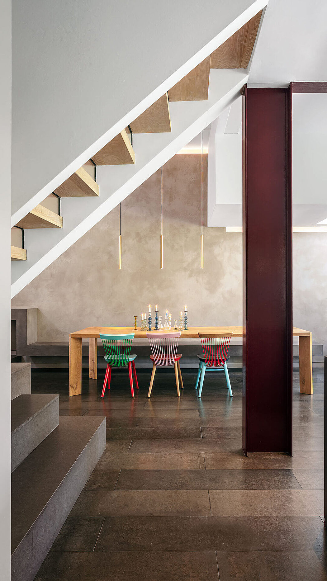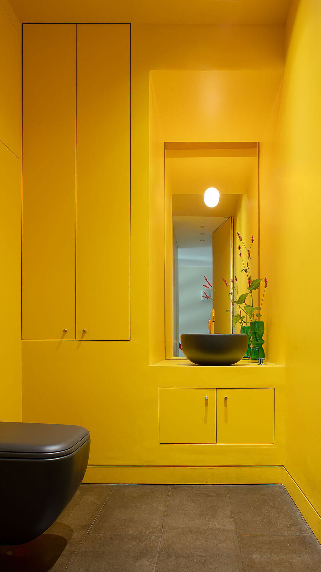 Inside, the preference for darker surfaces and finishes evokes past centuries, connecting the new and old with a poetic approach.