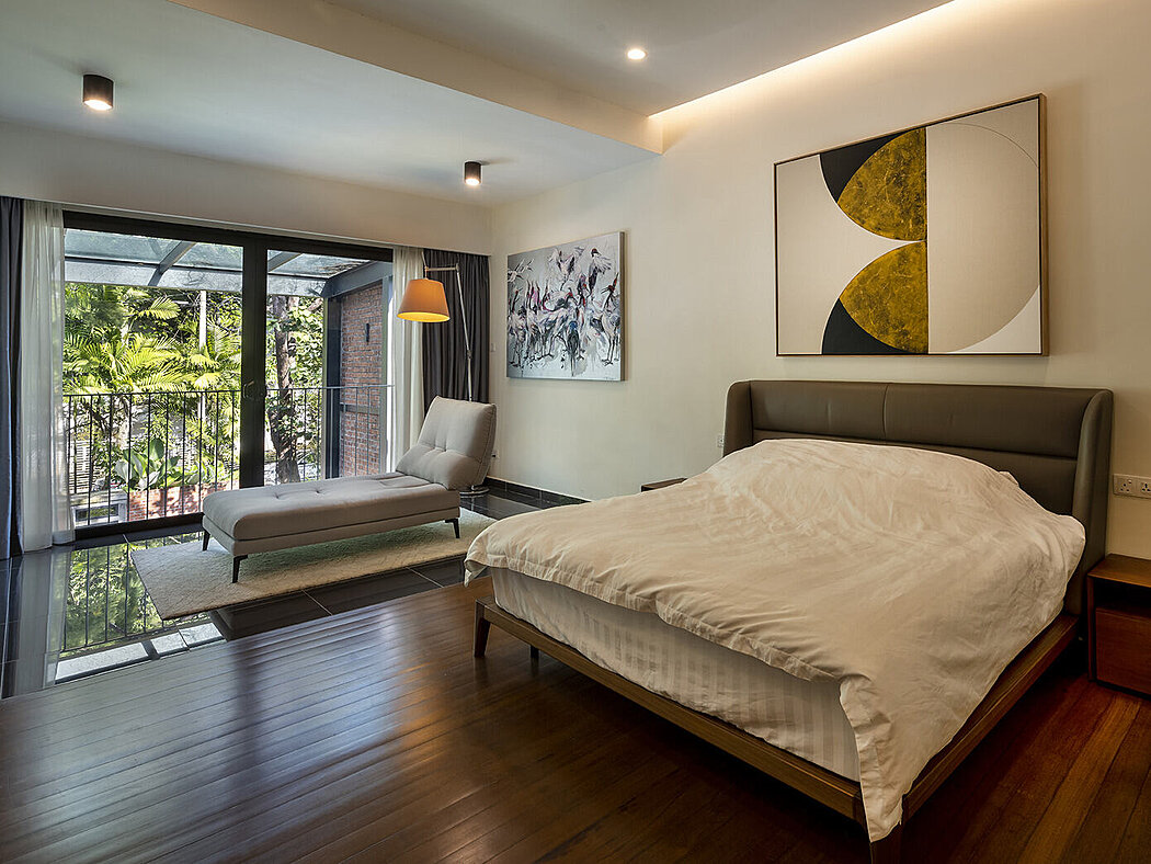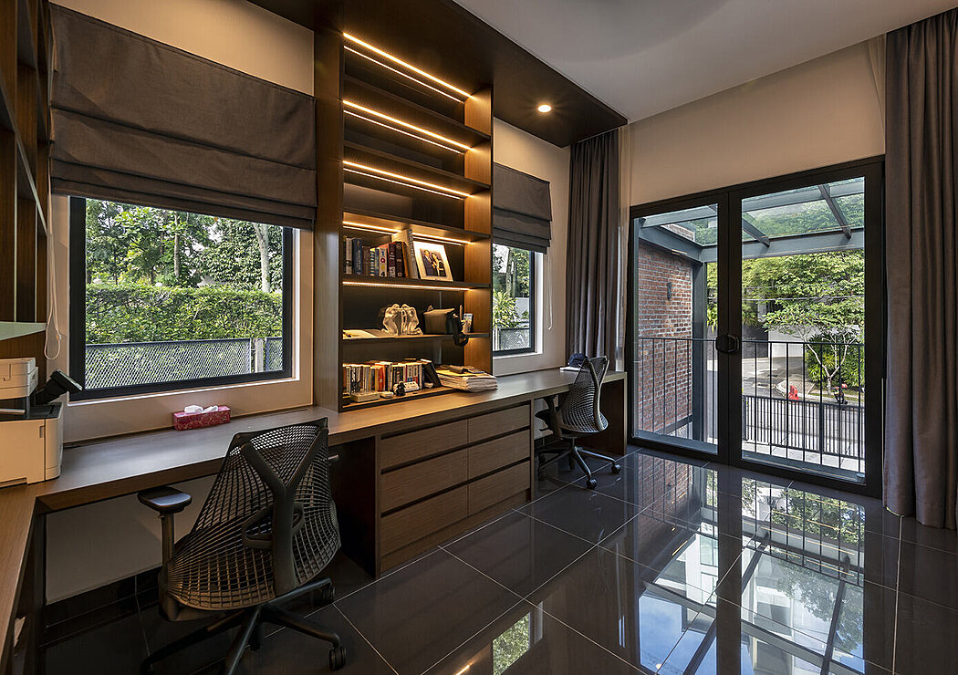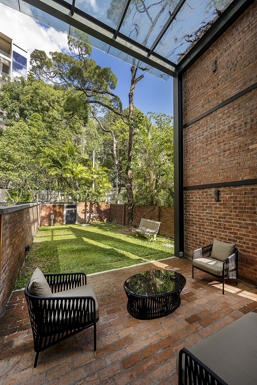 The upstairs area was redesigned to accommodate a new master bedroom, study, entertainment spaces, and room for future children. The result is a simple, modern intervention that seamlessly integrates all aspects of the site, gardens, retaining walls, and the recycled building structure, making House No.16 an excellent example of tropical and green architecture.