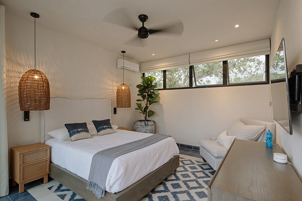 The interior design of Casa Encanto uses neutral tones to allow the architectural elements to shine. Strategic pops of color reinterpret the rich Yucatecan culture in a modern setting, echoing in textiles, artworks, and decorative details.