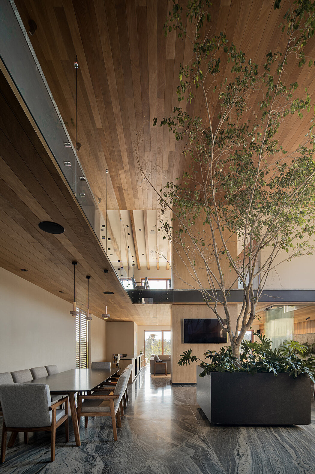 Beyond just its alluring architecture, what truly sets this house in Morelia apart is its graceful interplay of natural woods and sophisticated design elements, all set against the backdrop of the region’s renowned topography.