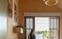 Located in Waalwijk, Netherlands, the Houten Huis is a family house designed in 2024 by studio] [space architecten. The architecture makes use of robust wooden walls, floors, and roof panels, showcasing cross-laminated timber’s sustainability and aesthetic appeal. Combining a compact footprint with smart solutions, the home balances functionality and beauty while promoting an eco-friendly lifestyle, with the cemented outer facade complementing its iconic form beside a body of water.