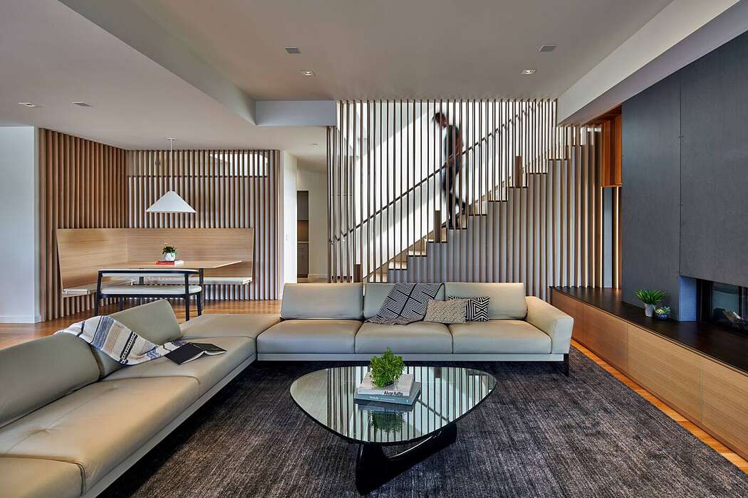 Riverglass House is a modern riverfront house located in Ada, Michigan, designed by Amanda Rogalski of Mathison | Mathison Architects.