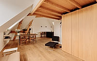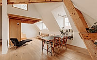 The Amsterdam Loft, designed by Michiel Hilbrink and located in Amsterdam, Netherlands, represents a profound transformation of an apartment space within an historical corporation building from 1924. This apartment renovation, distinguished by its open-plan layout and cozy private areas, contrasts modern living conveniences with classical architectural elements like the Russian pine roof. The intelligent use of space, light, and top-tier materials makes this loft a premier example of contemporary apartment living, completed in 2024.