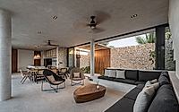 Located in Telchac Puerto, Mexico, the house by Ápiron offers a private coastal retreat. Designed in 2022, it features a stone base supporting a polished concrete volume, maximizing privacy and sea views. The structure integrates local Toh stone and a distinctive “bajareque” lattice. Its 370-square-meter layout includes interactive social spaces on the ground floor and family rooms above, blending grey tones with wood and natural fibers.