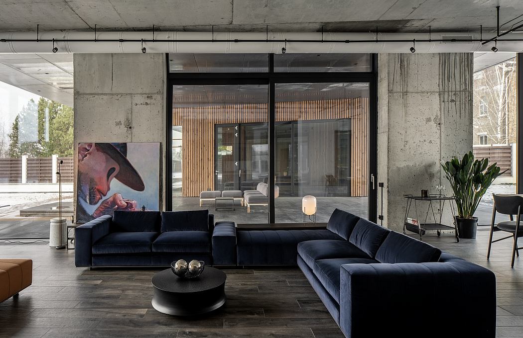 Balancing industrial style with the tranquility of its surroundings, the design blends dark woods with light panels, concrete elements, and minimalist geometries, taking cues from Rick Owens’ ruggedly chic Italian apartment.
