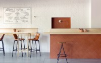 This chic bar is the perfect place for socializing, with a living room-inspired common area and intimate private zones. The large bar table is the focal point, where the magic happens. The mid-century and modernism design style create a warm and inviting ambiance, with vintage armchairs, soft lines, and tinted wood. Even in the evening, the interior is illuminated with cozy and soft lights, making it an ideal destination for unwinding and connecting with others.