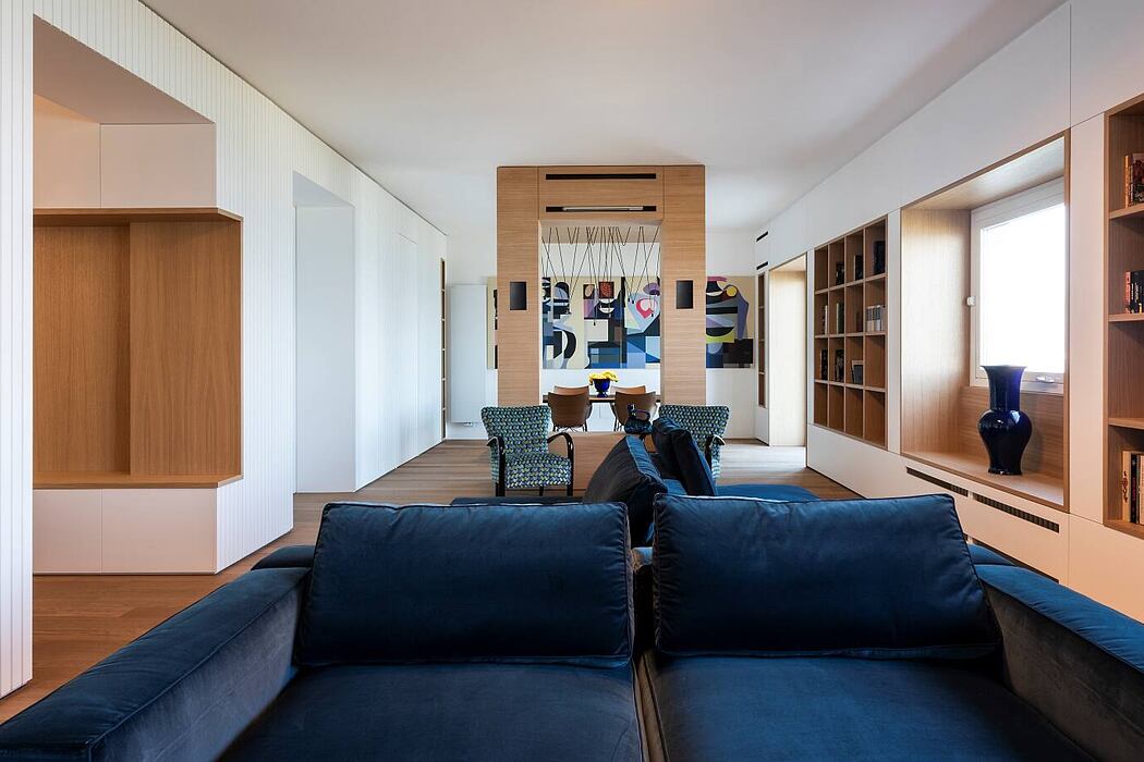The Art Septum lands in Bari, Italy, as an apartment by Clubdesign Architecture Studio, composed with a collector’s eye and a maker’s hand. Across rooms tuned to art and daylight, the scheme builds a clear material dialogue between green marble, light oak, and black-stained timber. It reads quietly at first, then reveals its depth with smoked mirrors, pale textiles, and precise edges.