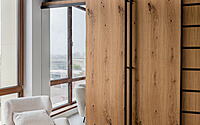Sunny Beach, a two-level apartment in the PIRS residential quarter of Minsk Region, Belarus, stands out as a modern masterpiece by Level80 Architects. Originally two separate units, this 2021 transformation integrates an open-plan living and kitchen area on the first floor with private bedrooms and bathrooms above.