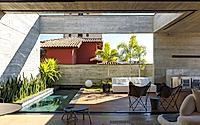 Concrete House occupies a steep lot in Goiânia, Brazil, where Dayala e Rafael Arquitetos Associados organize living across two tiered levels. The house reads as low, confident horizontals—social rooms flow at grade to a pool terrace, while a closed upper volume gathers the private rooms. Structural clarity drives the project, using long spans, cantilevers, and a lean material palette to settle the home into its terrain without heavy earthwork.