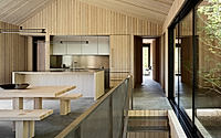 Caju is a house in Teton Village, Wyoming, United States, designed by CLB Architects in 2024. The home emphasizes simplicity, with a weathering steel shell that nods to a Brazilian fruit. As a compact retreat amid thick woods, Caju’s sturdy exterior has been designed to complement its surroundings and prevent further disturbance of the rugged landscape. The interior palette is limited mostly to larch wood that creates a warm, intimate atmosphere.