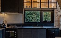 This small cabin designed by Tomás de Iruarrizaga is located near Valdivia, Chile. It sits in the middle of the dense and humid Valdivian rainforest. The form is conceived as a compact and sharply defined volume — a prism with acute angles that contrasts strongly with its surroundings. Its interiors, made of laurel wood, are warm and tactile; everything feels like part of a built-in furnishing, much like the interiors of boats, where ribs and keels are exposed.