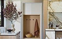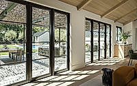 Situated in Los Altos Hills, California, Materials Matter is a house designed by Fergus Garber Architects in 2021. This contemporary residence highlights timeless sophistication, featuring a striking façade that juxtaposes a gray standing seam metal roof with velvety stucco, complemented by dark wooden headers. Inside, expansive spaces like the great room and kitchen boast high-end materials, while custom storage solutions and a stylish staircase enhance functionality and aesthetics.