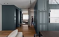 Effe transforms a 110-square-meter apartment in San Bonifacio, Italy, into an intimate, measured home by Christian Tezza Architetto. The layout shifts around a new entrance volume, trading one bedroom for a generous living area that looks toward a mature park. Dark accents, warm timber, and carefully tuned lighting support a sequence that moves from shared rooms to a private suite with walk-in closet and sensorial bathroom.