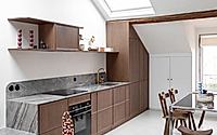 Forest House sits in Warsaw, Poland, a single-family house by 81.WAW.PL that leans into the surrounding pines. The exterior wears dark stone and slate, while recessed timber niches temper the weight with light and warmth. Inside, the plan stretches toward a covered terrace and uses glazing to pull the landscape through the rooms, giving daily life a steady link to the forest edge.