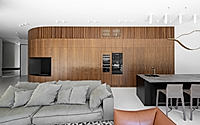 Set in Palanga, Lithuania, the Open House is a single-family house designed by Devyni Architektai in 2023. Featuring a sculptural design, the abode surprises with an entryway completed with a slit and a closed-off facade. Inside, the house opens up significantly, with a bright and spacious interior where a curved internal wall accommodates the kitchen, fireplace and closet, along with expansive glass doors that lead to the inner courtyard.