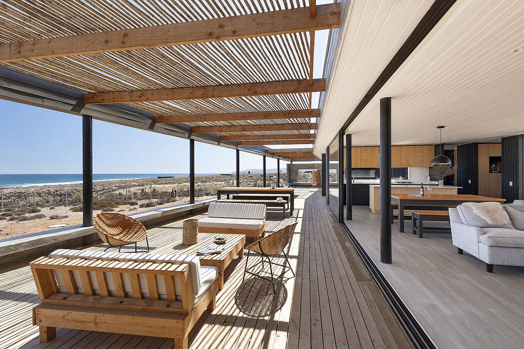 Built in 2018, this majestic dwelling sits atop a mild slope on a sprawling 5,000 square meter (6,000 square yards) lot, offering breathtaking views of the Pacific Ocean. With its ingenious blend of rustic concrete foundations, glass, and wood elements, the VC House establishes a seamless connection between its interiors and the natural beauty of its surroundings. Discover a layout divided into three distinct zones, each designed to provide an immersive living experience amidst the tranquil whisper of the coastal winds.