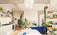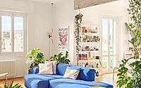 This apartment in Genoa, Italy, designed by llabb, has a colorful, contemporary interior. The layout was modified to create a spacious living area that opens views to the port, while exposed beams tell the story of the district’s industrial past. Working with local brand Mobilia, the design incorporates a mix of furniture and artworks, combining bold colors and iconic pieces from the 1950s to present day.