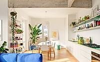 Kalei-cà is a renovated apartment in Genoa, Italy, designed by Circolo – A. The transformation features an open space with bold color contrasts, such as intense blue walls in the kitchen, complemented by a pure white worktop.