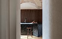 Set in Recco, Italy, Under a Big Vault is an apartment defined by a spacious vaulted area in stone, designed by Gosplan architects in 2022. It occupies a historic structure known as “the convent,” which underwent conversion following war damage. The architectural intervention emphasizes the duality of spaces, adding a blue hue to areas once open to the sky and featuring traditional flat ceilings in rooms facing the sea.