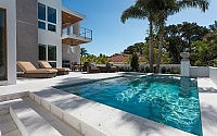 This home is constructed in the world famous neighborhood of Lido Shores in Sarasota, Florida. It features a flipped layout with a front court pool and a rear loading garage.