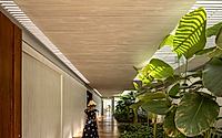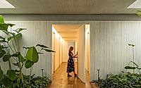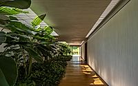 Casa Fluir, a house located in São Paulo, Brazil, designed by Sabella Arquitetura, showcases contemporary design with large glass panels. Prioritizing nature, it features a shared courtyard, a sauna, and an art studio. Natural lighting fills the spaces, complemented by pine brise-soleils. The 494 sq m (5,300 sq ft) residence integrates the landscape through a dark retaining wall and lush interior gardens. Seven suites and an infinity pool ensure comfort and harmony with the surroundings.