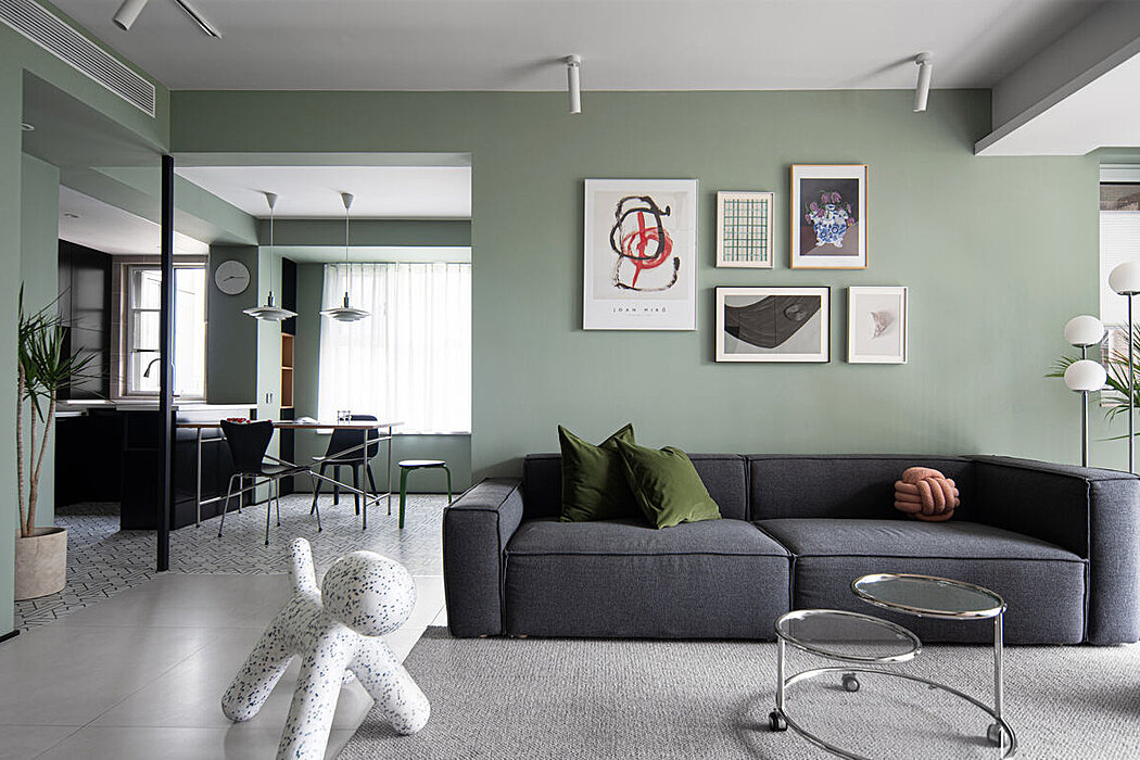 Grey Green Residence is a minimalist apartment located in Shandong, China, designed by Lu Yuzhuo.