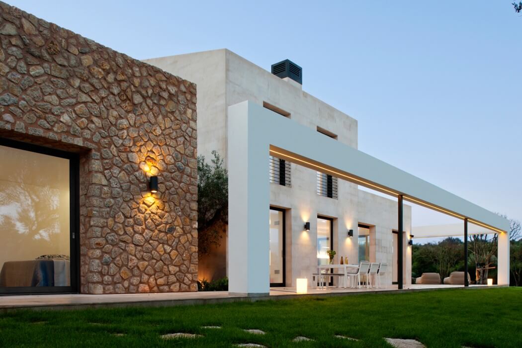 Surrounded by greenery with breathtaking views of the Serra de Tramuntana, this modern villa is situated on the Spanish island of Mallorca.