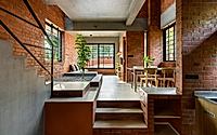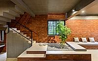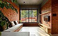 A private house located in Bratislava, Slovakia, House With Gills features design by Beef Architekti. Specific to its design style, this 2023 project includes angled walls surrounding the exterior, including an atrium with a vertical garden that evokes a jungle. The deep layout of the home arranges the main living functions around this central area in a way that embraces outdoor views.