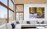 Situated within Quebec’s Laurentian woods, the Hauts-Bois House designed by Thellend Fortin Architectes exemplifies architecture that seamlessly evolves with its landscape. In 2019, the clean and geometric design follows the topography for a harmonious setting. Picture windows allow for captivating connections to the abundance of nature, while connecting rooms embody a cross-view concept that encourages appreciation of the seasons.