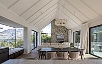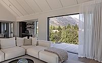 The elevated living areas offer panoramic views of the Remarkables mountain range, complemented by generous ceiling heights and a sunken lounge. The design seamlessly integrates indoor and outdoor spaces, creating a warm, flexible, and inviting family home.