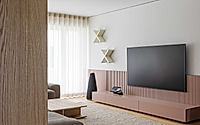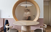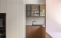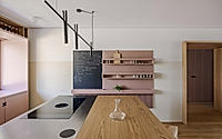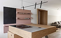 A renovated apartment in the early 60s building, designed for a young family, is located in Nidau, Switzerland, in a peaceful neighborhood with a view of the river Zihl canal. Before the design by Beef Architekti, the apartment retained its original, strictly divided floor plan, now organized into three clearly defined zones, interconnected by two unique custom-made carpentry elements that add visual dynamism and airiness to the interior.