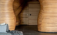 Nestled in Strzykuły, Poland, the Swoosh House is a slender pavilion designed by Pawel Lis Architekci. The 220-square-metre residence incorporates arched elements intended to frame views and maximise access to sunlight. Built on the axis of a long first floor, its top floor is set back diagonally.