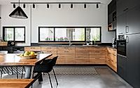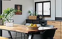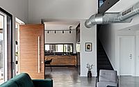 This house, located in Nahariya, Israel, was designed by Ronnie Friedman in 2020. The clean design style provides maximum privacy and separation from the street due to the dense nature of the surrounding neighborhood. This house features an enclosed façade that creates a transitional space to reinforce intimacy and detachment from the street, framing views toward a distant horizon visible from the upper floor.