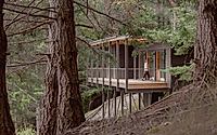 Miller Hull Partnership designed Trestle Cabin as a prototype for developing low-impact cabins on challenging and remote sites. Located in San Juan County, WA, the house hovers above the ground on a steel exoskeleton that provides nautical views while avoiding excavation and the disruption of the surrounding flora and fauna. The design employs a strategy of long-term adaptability, featuring a modest footprint and an independent armature that accommodates reconfigurations over time.