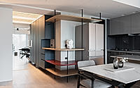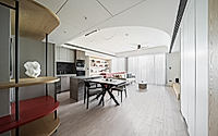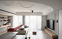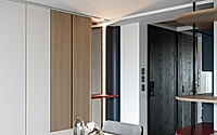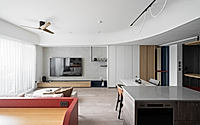 Plus is a apartment located in Taichung City, Taiwan, designed by Haven Space Design and employing a minimalist and functional ethos. Stepping into the home, you’re first greeted by a thoughtfully designed entryway, where a suspended wooden grille adds both warmth and a sense of ceremony to the act of coming home. Beside it, a full-height mirror subtly reflects the interior, visually expanding the space while offering ease to daily routines before heading out.