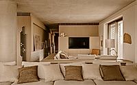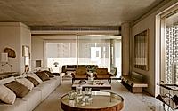 A home that prioritizes integration characterizes the Sete apartment, designed by Arthur Casas in 2024 in São Paulo. With unity in mind, the layout was planned with the residents’ extensive art collection as a backdrop, and large openings to greenery where natural light filters through a cobogó wall. The exposed concrete slab and pillars dialogue with Santa Margherita terrazzo and wood paneling, combining modernity and warmth throughout the space.