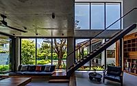 Cote Architects highlights local climate-smart features throughout this concrete home in Huế, Vietnam. Designed in 2024, the PVT House comprises two stacked volumes arranged around a lush garden, easing natural lighting and ventilation. Passive cooling methods include open-air patios and a facade with adjustable glass doors, enhancing air circulation. This approach not only ensures comfort but also reduces energy use, resonating with the studio’s focus on environmentally friendly solutions.